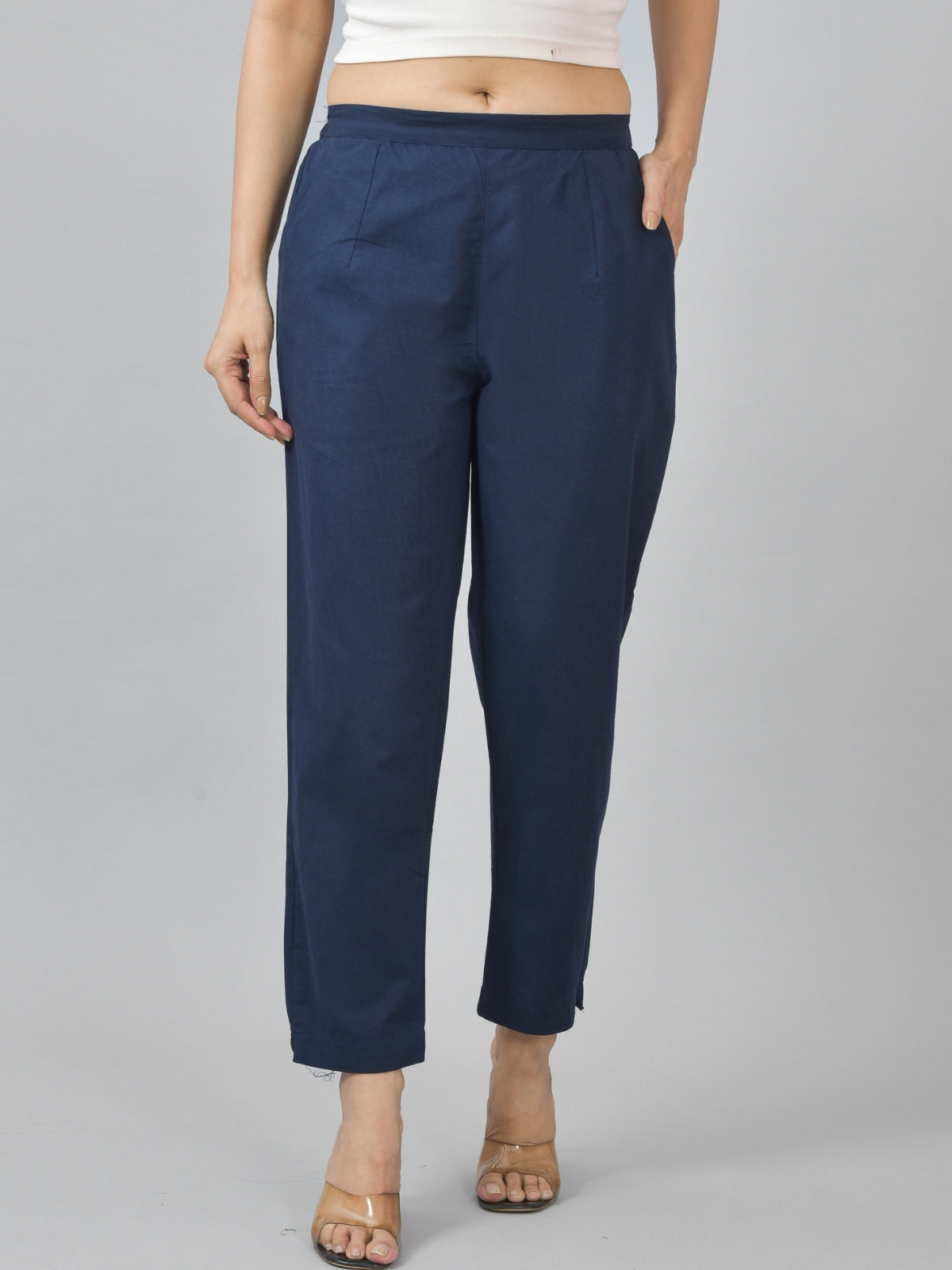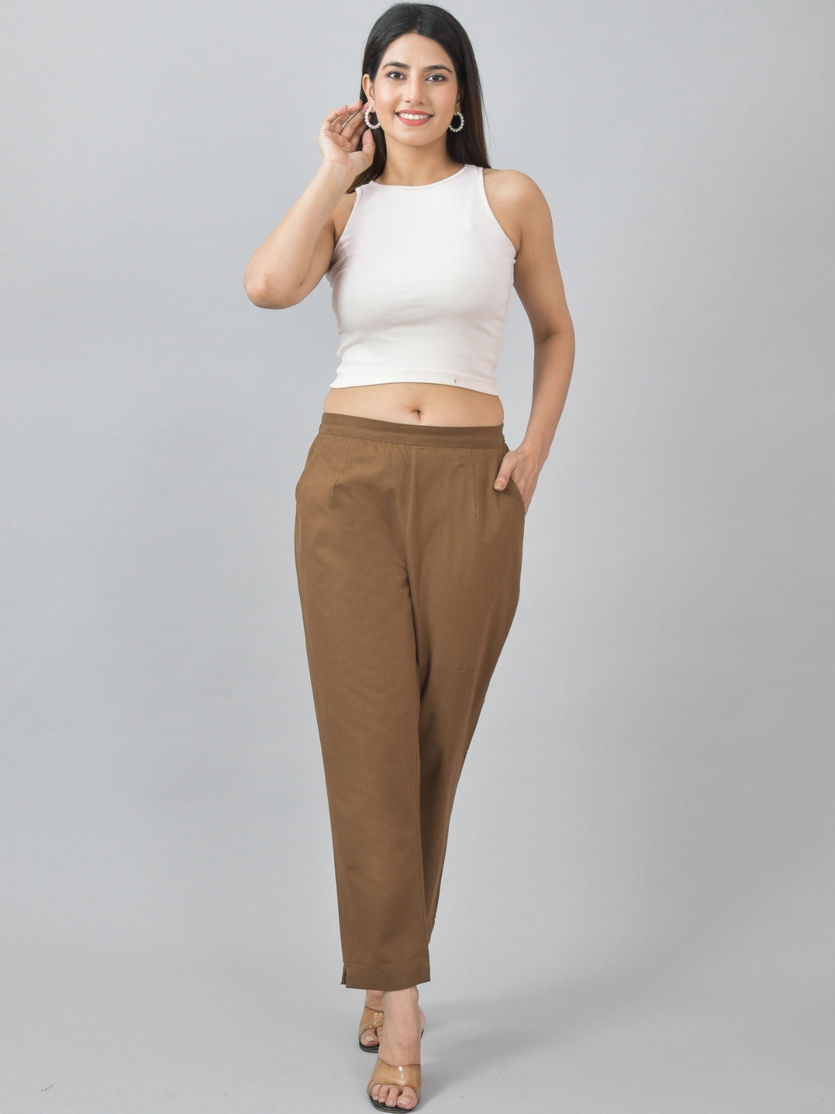 These Quaclo Pack Of Two Womens Deep Pocket Solid Cotton Trousers is functional and fashionable addition to your daily outfit. These trousers, which are made from cotton, provide unmatched comfort and breathability for all-day wear. The half elastic waistband closure ensures a perfect fit and easy on-and-off, making these trousers a go-to choice for comfort and convenience. These trousers are ideal for business, casual outings, or special occasions thanks to their classic style and flawless fit. The two spacious pockets improve functionality and convenience for your daily activities, and the solid design makes these trousers a long-lasting classic in your wardrobe. With the Quaclo Womens Deep Two Pocket Cotton Trousers, where comfort and style easily converge, up your fashion game.
