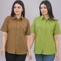Pack Of 2 Womens Solid Brown And Olive Green Half Sleeve Cotton Shirts Combo