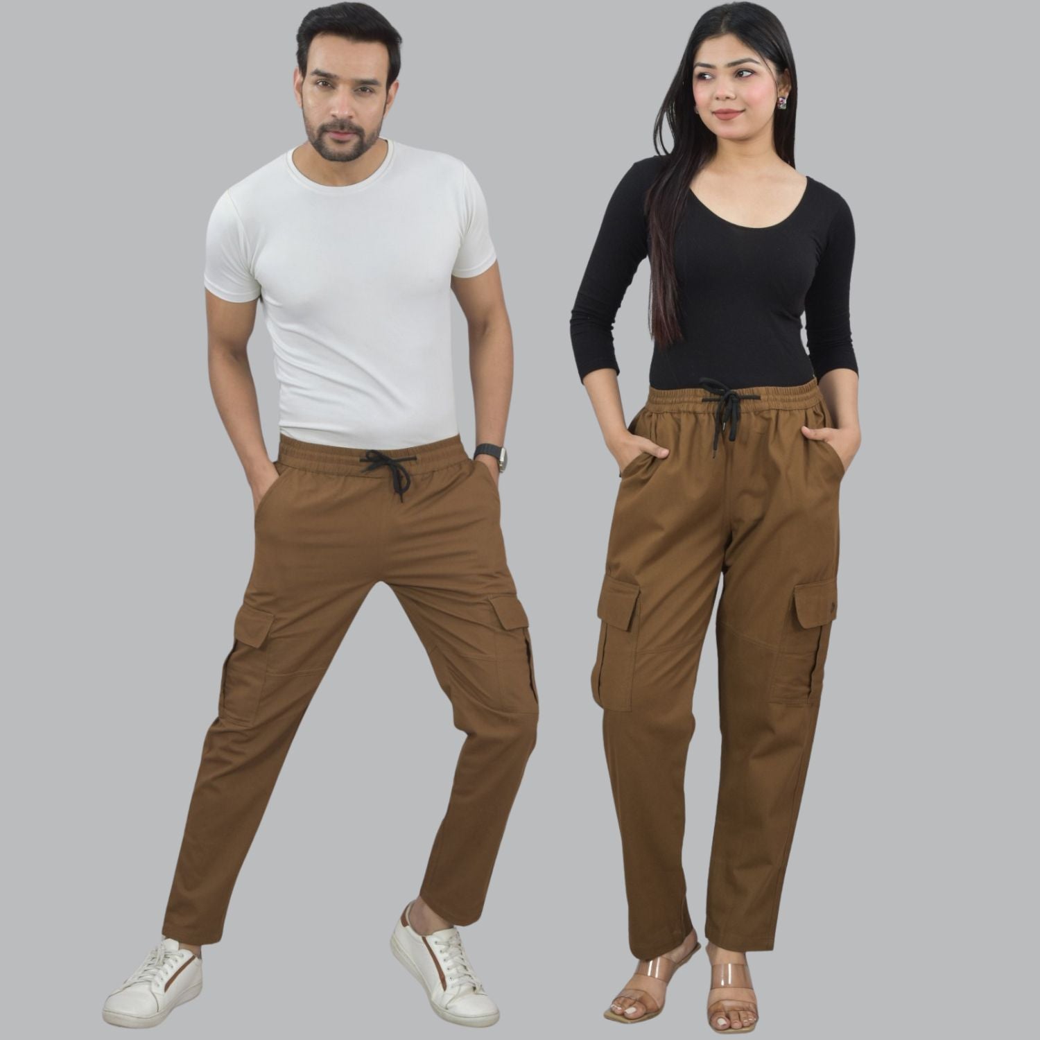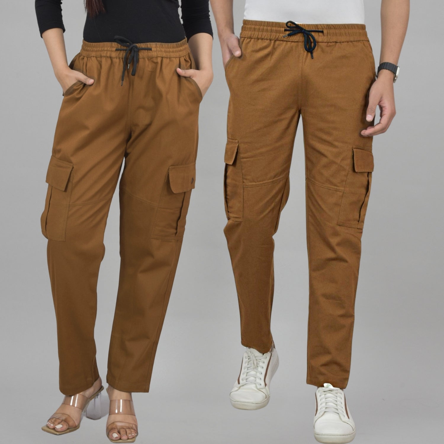 Quaclo Couple Brown 5 Pocket Twill Straight Cargo