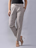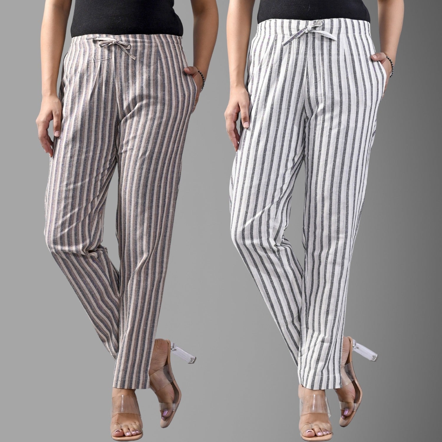 Pack Of 2 Brown And Light Grey Womens Cotton Stripe Pants Combo