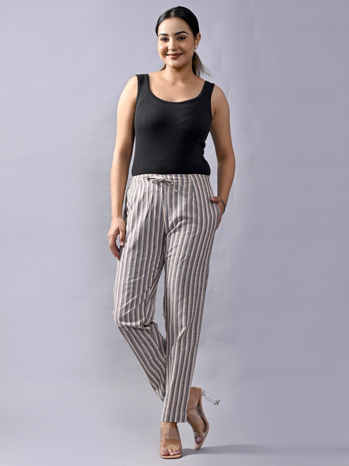 These QuaClo Women's Cotton Striped Pants Combo, are created to offer both comfort and fashion, Which will elevate your sense of style. These stylish trousers have a regular fit and are made from premium South Cotton fabric for all-day comfort. For added convenience, it has a drawstring at the front and back elastic waist which offers an adjustable and personalised fit. They are ideal for both casual and formal events because of its stylish striped pattern, which adds a dash of sophistication. QuaClo Women Cotton Striped Pants Combo with Drawstring and Back Elastic Waist are available to purchase right away on Quaclo to update your wardrobe.