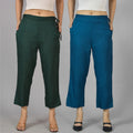 Pack Of 2 Womens Dark Green And Teal Blue Ankle Length Rayon Culottes Trouser Combo
