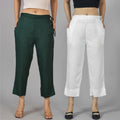 Pack Of 2 Womens Dark Green And White Ankle Length Rayon Culottes Trouser Combo