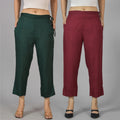 Pack Of 2 Womens Dark Green And Wine Ankle Length Rayon Culottes Trouser Combo