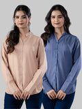 Are you looking for a stylish yet comfy women's shirts? These solid viscose rayon shirts are perfect for any event! The hip-length cut, V-shaped Mandarin collar neck, and full sleeves of these shirts give them a chic and modern look. All-day comfort and breathability are provided by the soft viscose fabric, and a snug and well-fitting fit is ensured by the button closure. These versatile pieces are ideal for casual outings, office wear, and evening events. They look great with jeans, skirts, or pants. These sophisticated and timeless shirts will add flair to your ensemble and are available in a range of colors. Invest in a chic and comfortable fashion update now. Perfect in all seasons!