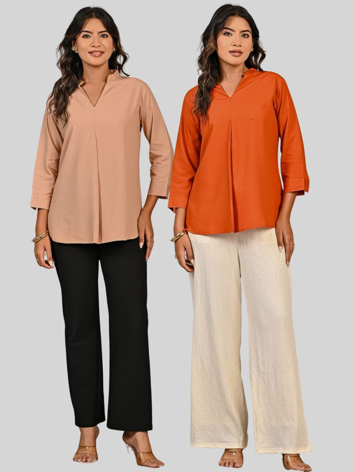 Discover our Solid Viscose V-Neck Collar Pleated Tops for Women, designed to blend comfort with timeless style. Crafted from premium viscose fabric, these chic tops features a flattering V-neck with a mandarin collar, elegant pleated detailing, and versatile 3/4th sleeves for a modern touch. Available in sizes S to 2XL and a wide range of 10 vibrant colors, they ensure the perfect fit for every woman. Ideal for both casual outings and office wear, these stylish tops can be effortlessly paired with jeans, trousers, or skirts for a polished look. Soft, breathable, and easy to style, it’s a wardrobe.