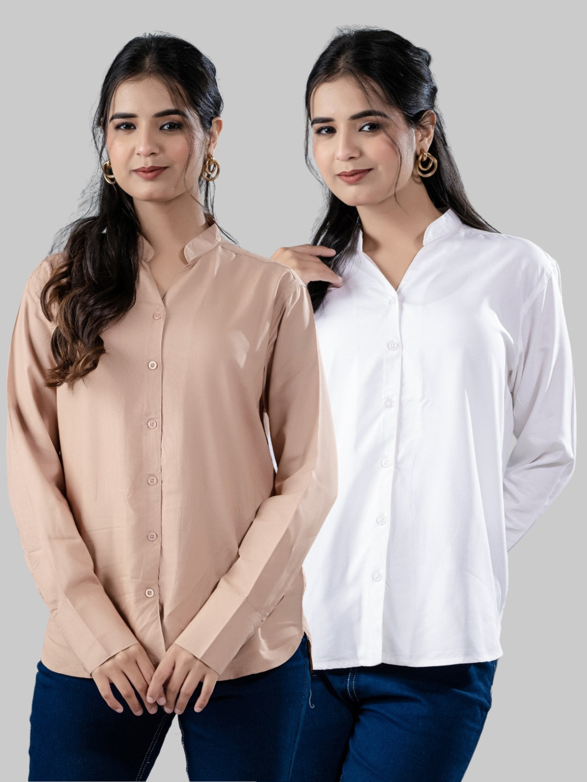 Are you looking for a stylish yet comfy women's shirts? These solid viscose rayon shirts are perfect for any event! The hip-length cut, V-shaped Mandarin collar neck, and full sleeves of these shirts give them a chic and modern look. All-day comfort and breathability are provided by the soft viscose fabric, and a snug and well-fitting fit is ensured by the button closure. These versatile pieces are ideal for casual outings, office wear, and evening events. They look great with jeans, skirts, or pants. These sophisticated and timeless shirts will add flair to your ensemble and are available in a range of colors. Invest in a chic and comfortable fashion update now. Perfect in all seasons!