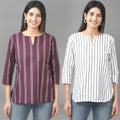Our Set of Two Striped Cotton Women Tops Combo offers unmatched comfort and style. For stylish ladies who value both cost and quality, these contemporary tops are ideal. These tops, which are made of soft and lightweight cotton, have a timeless striped pattern that elevates any outfit. These tops are adaptable for any occasion with a flattering fit and a robust design. With this essential set, you can up your style ante while maintaining comfort. Get our Striped Cotton Women Tops Combo today to stand out From The Crowd.