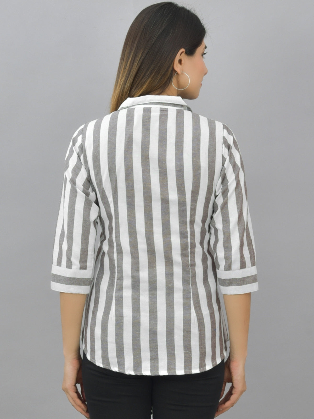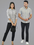 Pack Of 2 Quaclo Couple Coffeee Striped Cotton Shirts