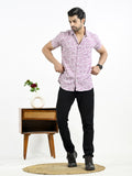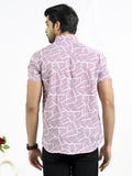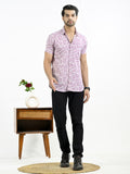 Mens Light Blue Block Printed Half Sleeve Crepe Shirt