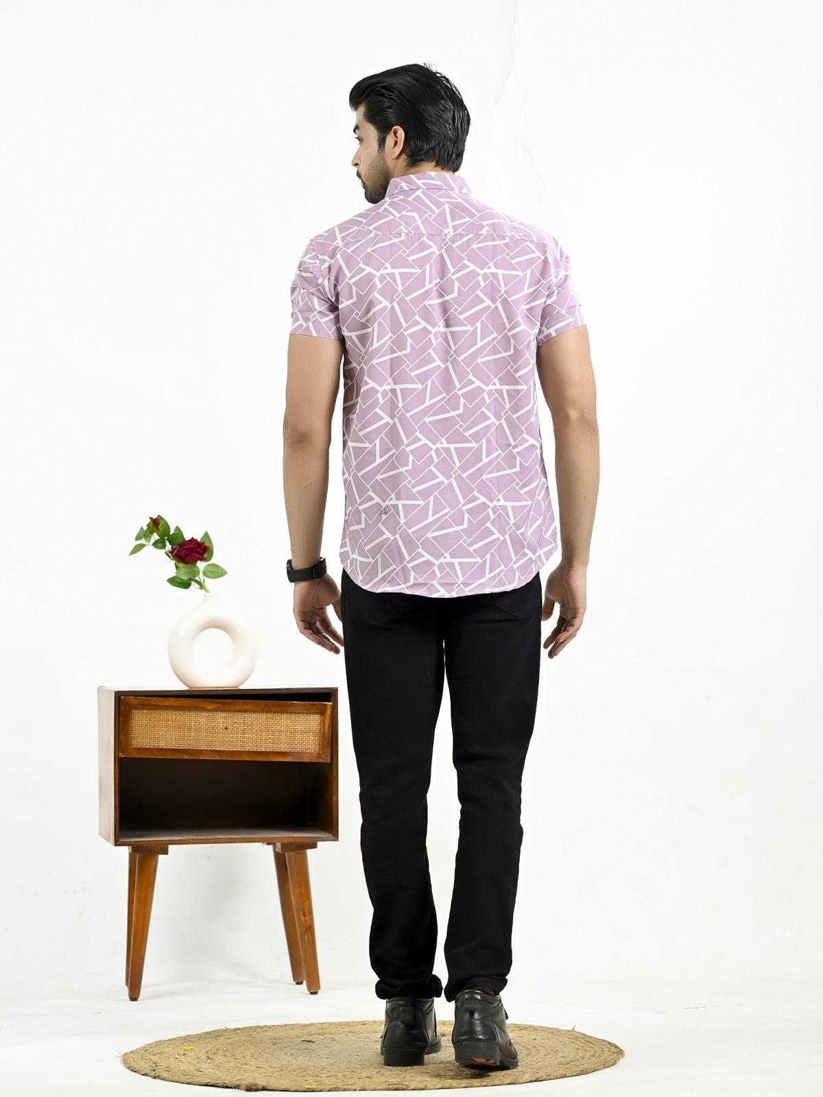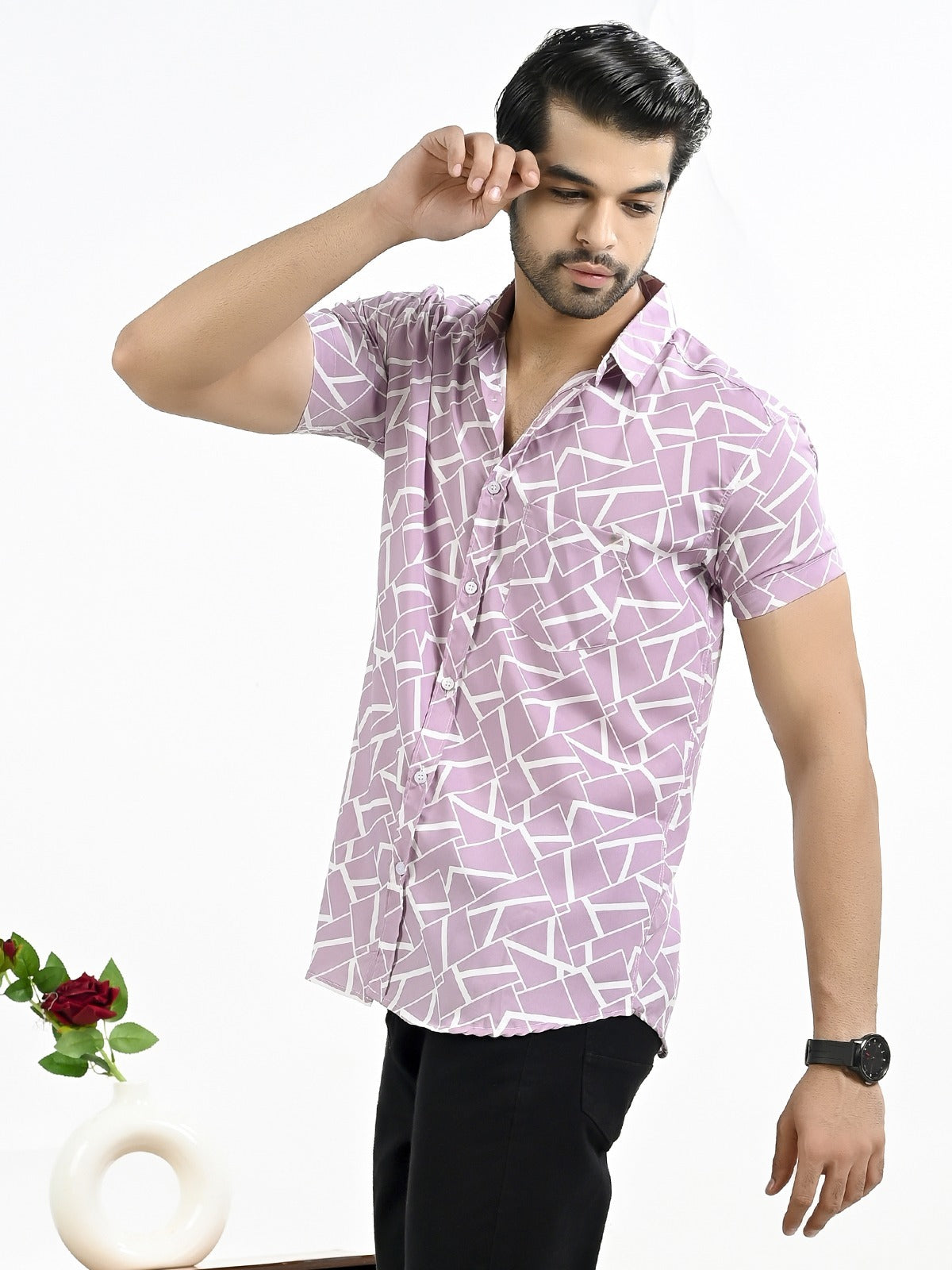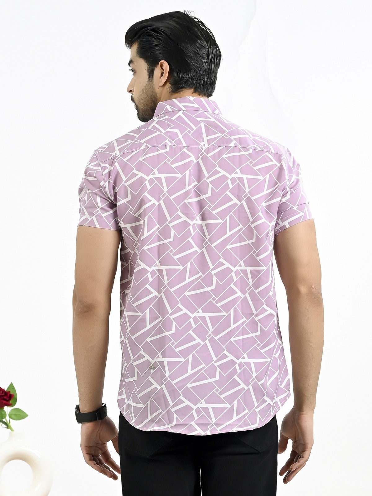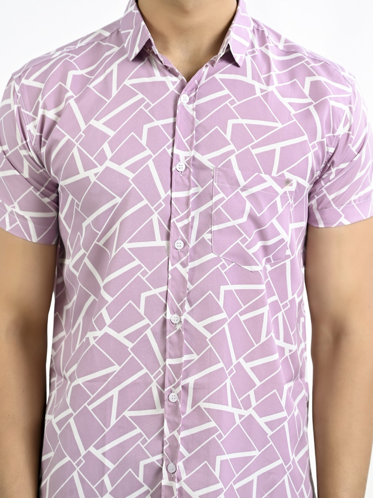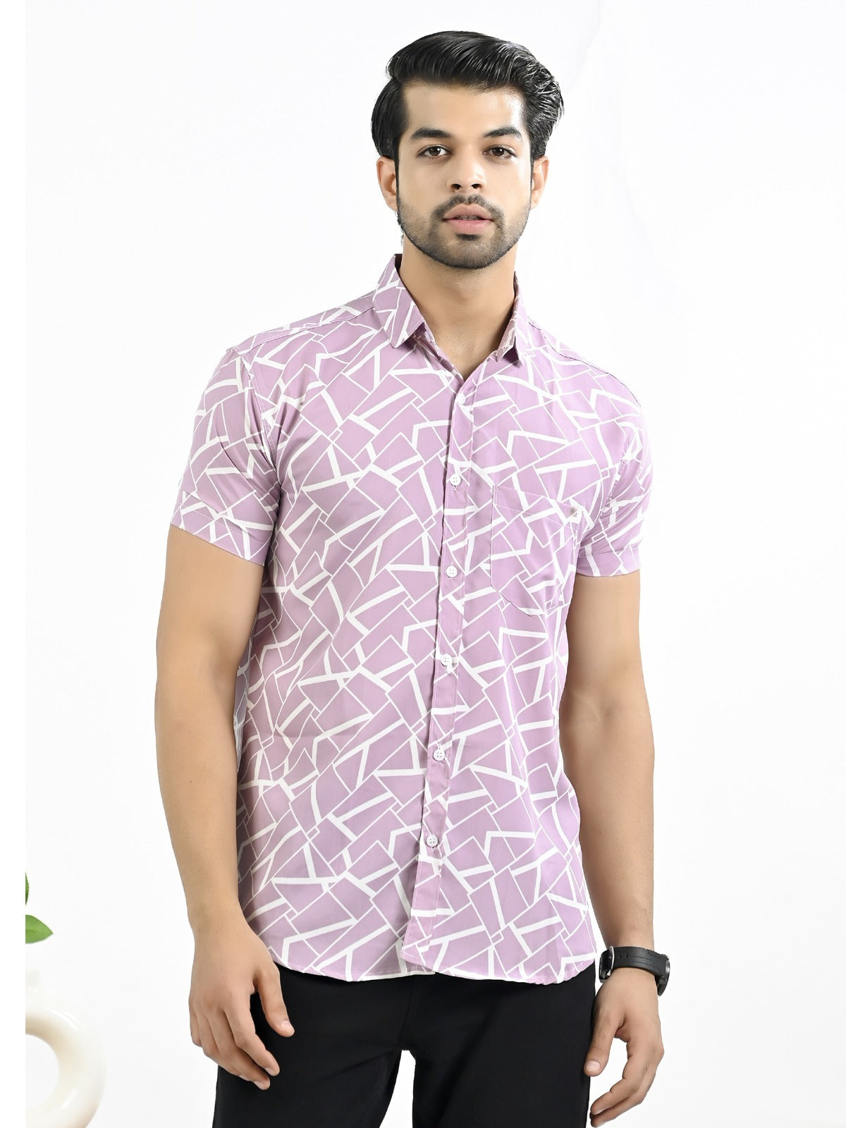The stylish men's half-sleeve crepe shirt with a floral print is an excellent fit to any outfit, whether it's casual or formal. With its soft and comfortable feel, this shirt's crepe fabric makes it ideal for every occasion. In addition to keeping you cool and comfortable, the half sleeves add a touch of elegance with their floral pattern. The spread collar and button closure of this large shirt guarantee an universal and elegant look. For a versatile look, pair it with your favorite jeans or pants. It looks great. For those who want to draw attention, this shirt is a must-have addition to any wardrobe.