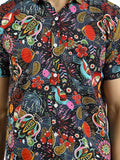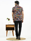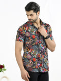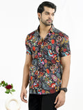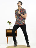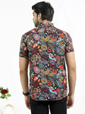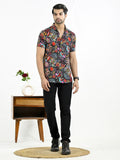 Mens Black Floral Printed Half Sleeve Crepe Shirt