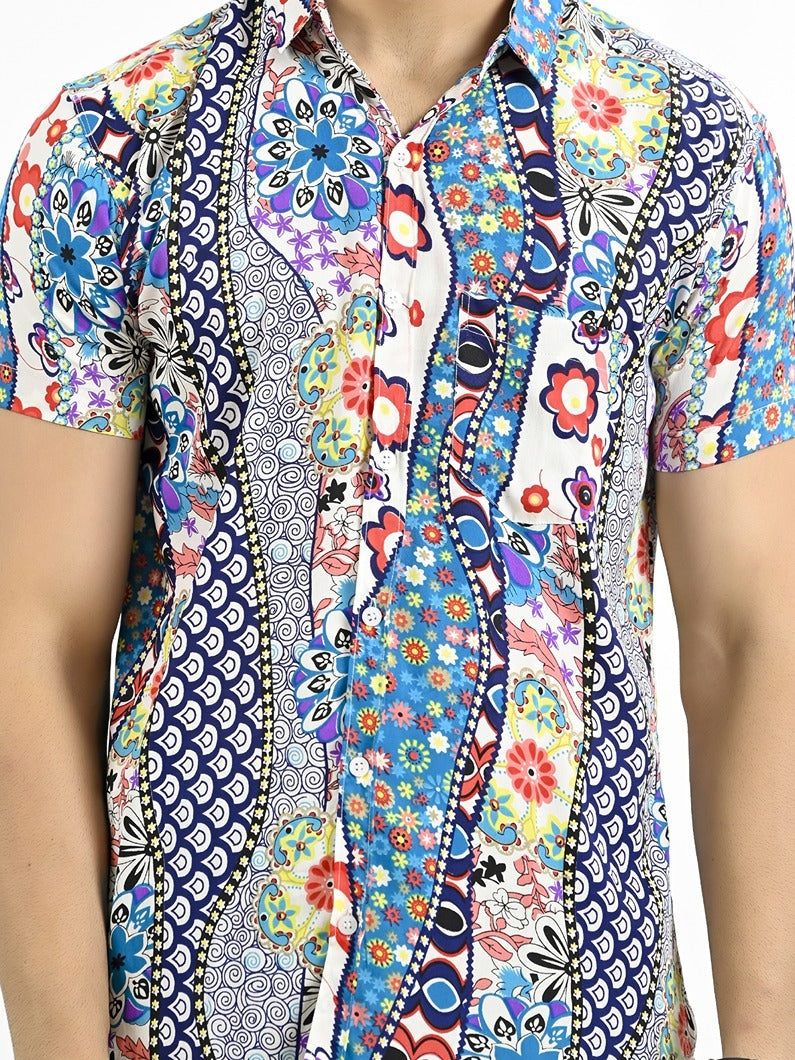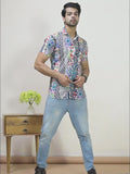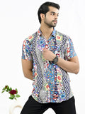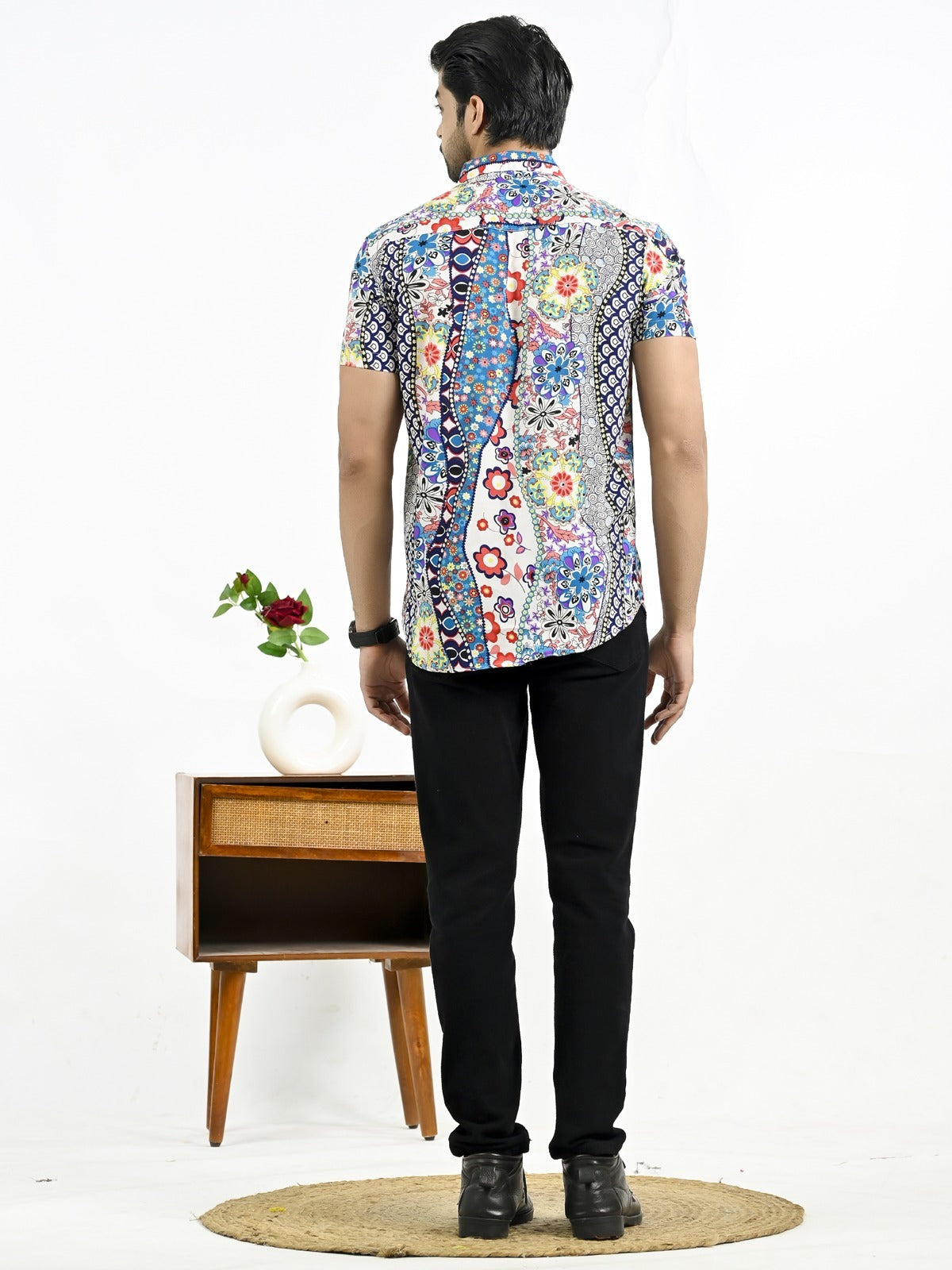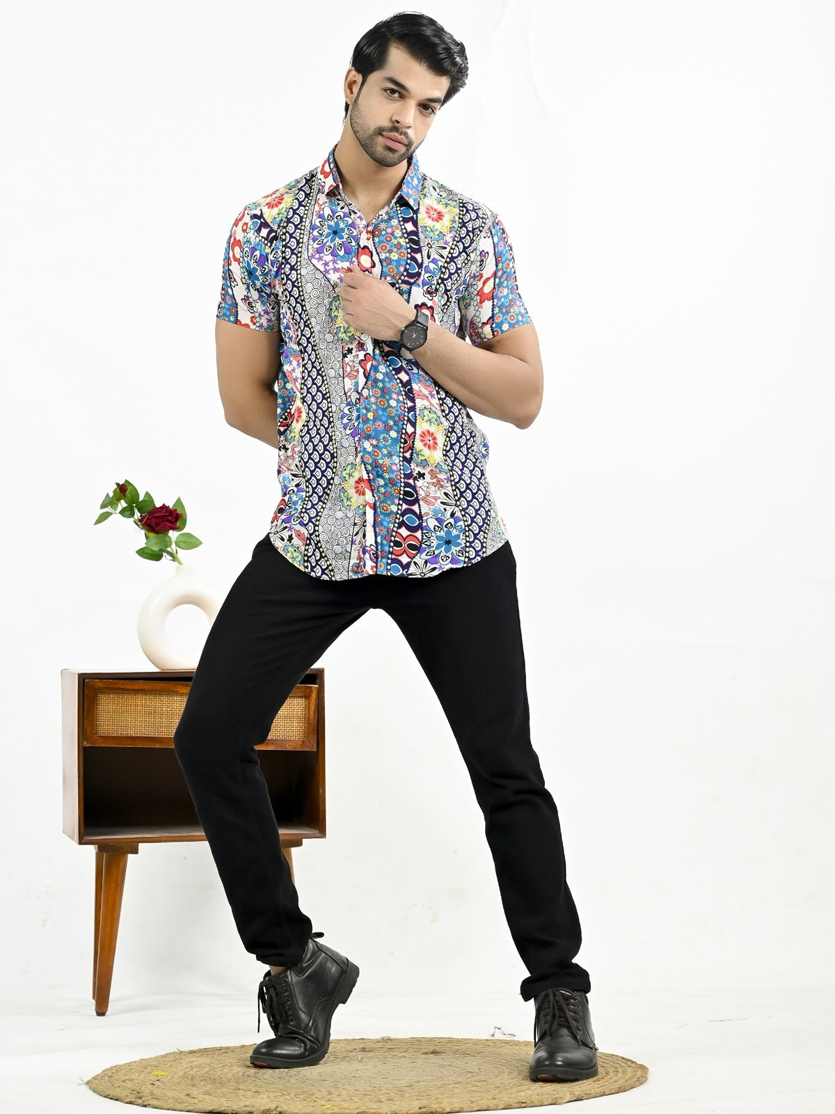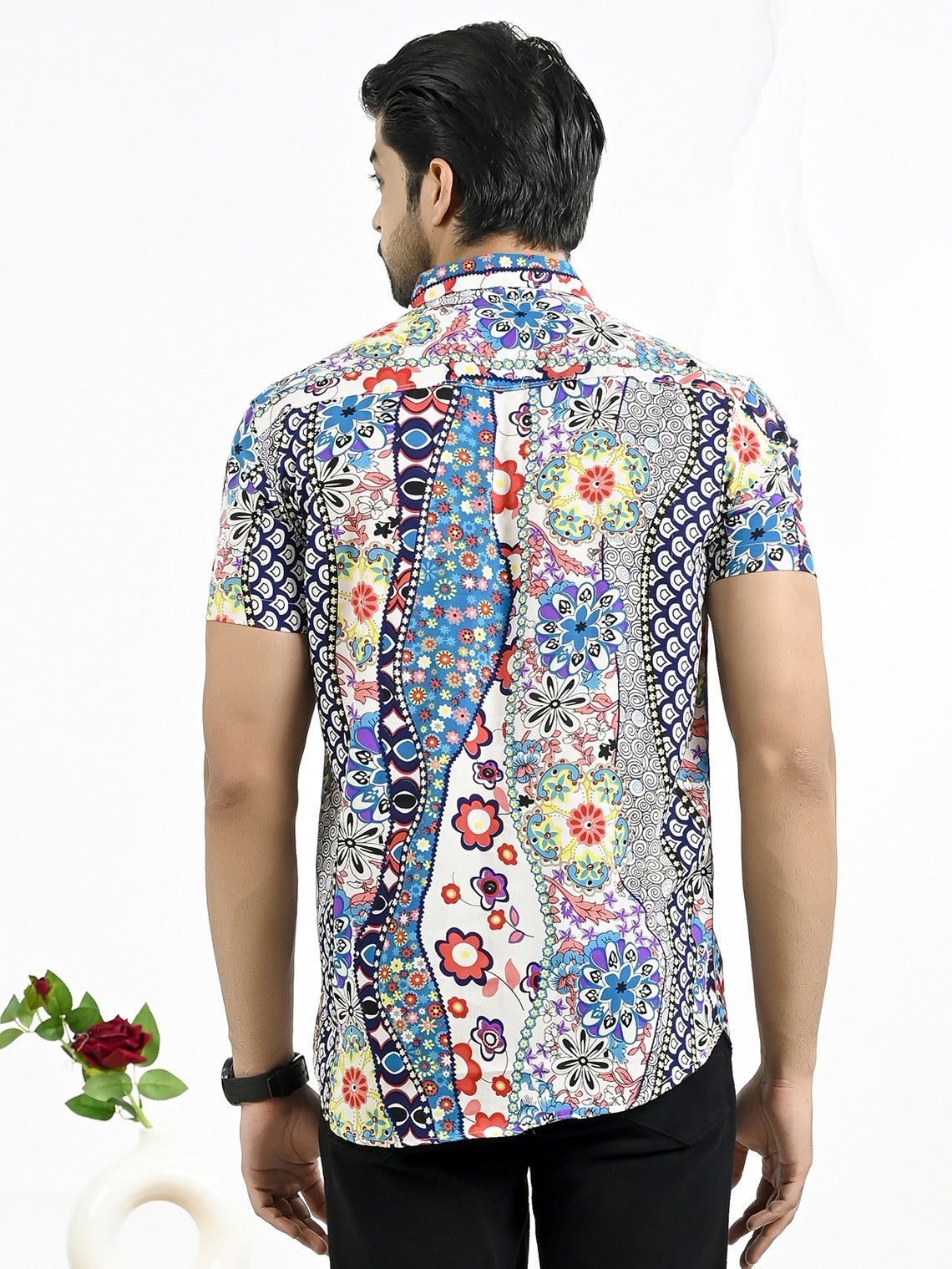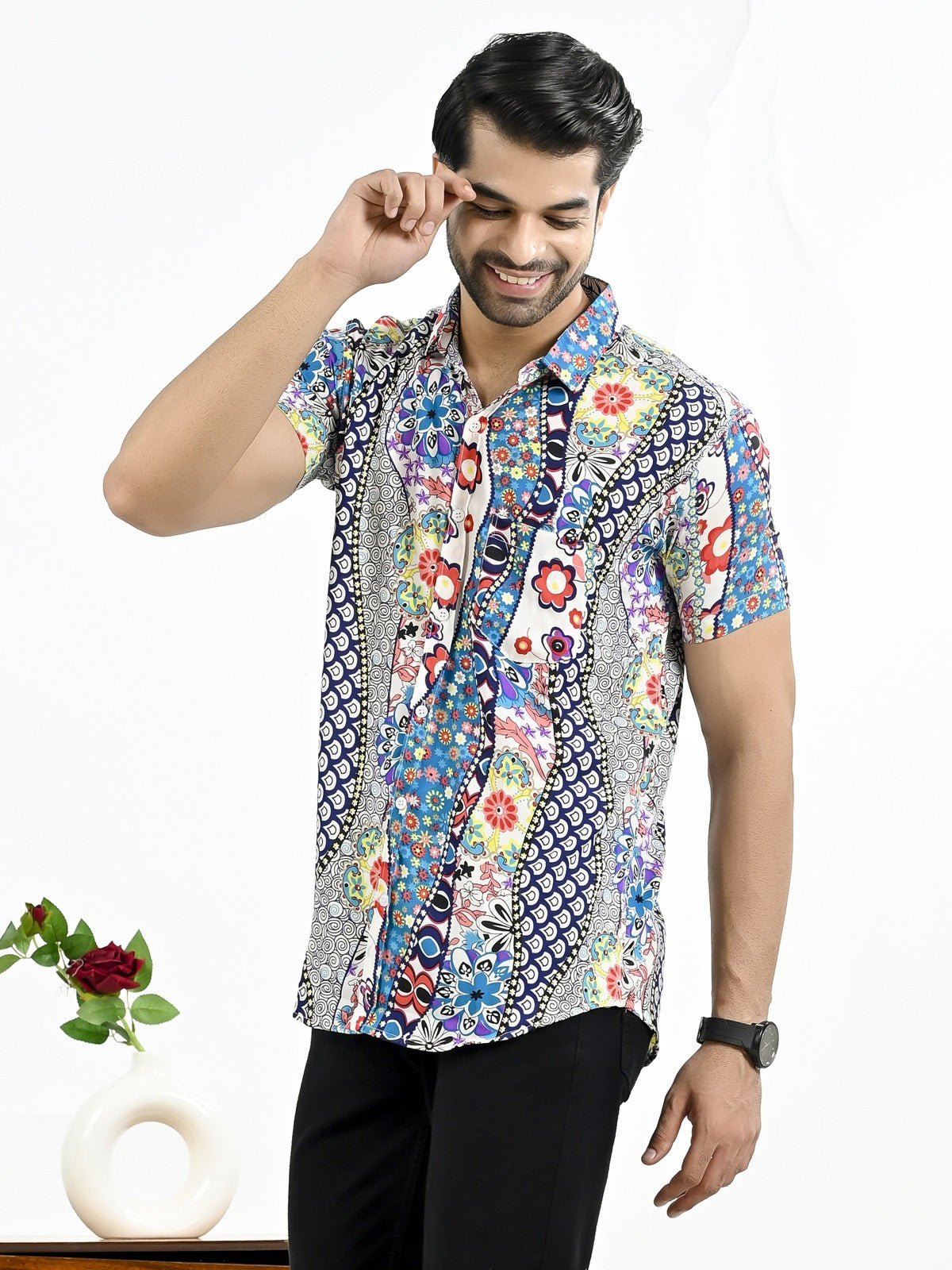 Mens Multicolor Floral Printed Half Sleeve Crepe Shirt