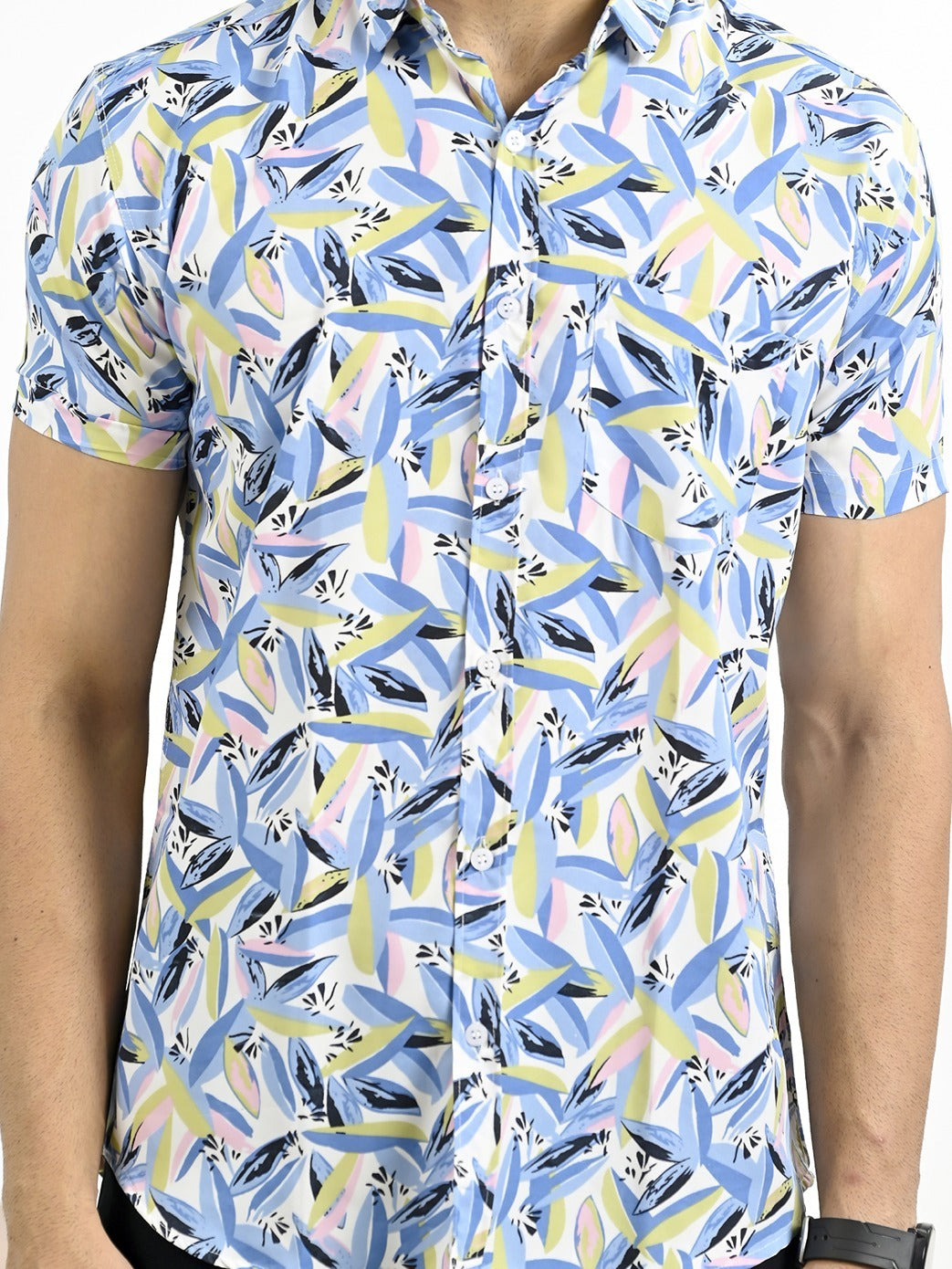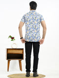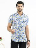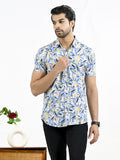 Mens Blue Fur Printed Half Sleeve Crepe Shirt