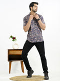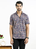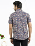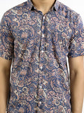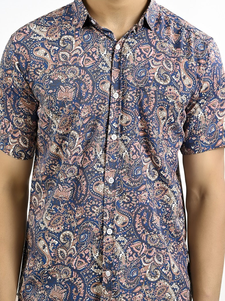 Mens Navy Blue Floral Printed Half Sleeve Crepe Shirt