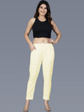 Pack Of 2 Womens Regular Fit Cream And Bottle Green Fully Elastic Waistband Cotton Trouser