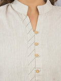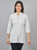Pack Of 2 Womens Cream And Meange Grey Woven Design Handloom Cotton Frontslit Short Kurtis