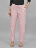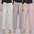 Pack Of 3 Womens Cream, Multicolor, Pink Cotton Stripe Trousers Combo