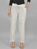 Pack Of 3 Womens Cream, Multicolor, Red Cotton Stripe Trousers Combo