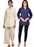 Pack Of 2 Womens Regular Fit Cream And Navy Blue Three Fourth Sleeve Cotton Tops Combo