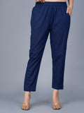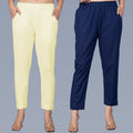 Pack Of 2 Womens Regular Fit Cream And Navy Blue Fully Elastic Waistband Cotton Trouser