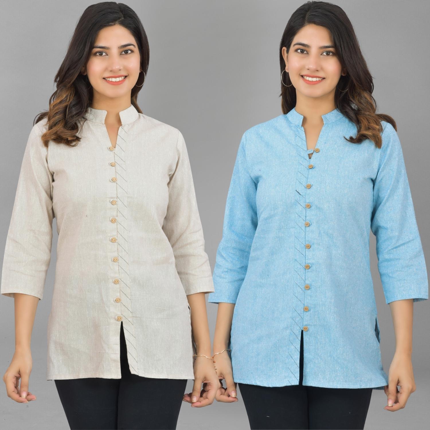 These Quaclo Women's Short Kurti Combo is expertly woven from the finest handloom cotton and will be a good choice to be added in your ethnic collection. These are elegant kurtis has a convenient 30-inch length, making it ideal for all-day wear and for small get togethers/functions as well. The glorious woven design on the front, combined with gorgeous buttons and a fashionable front-slit style, makes it complete. This outstanding addition to your wardrobe provides the ideal balance of comfort, style, and tradition at the same time.