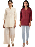 Pack Of 2 Womens Regular Fit Cream And Wine Three Fourth Sleeve Cotton Tops Combo
