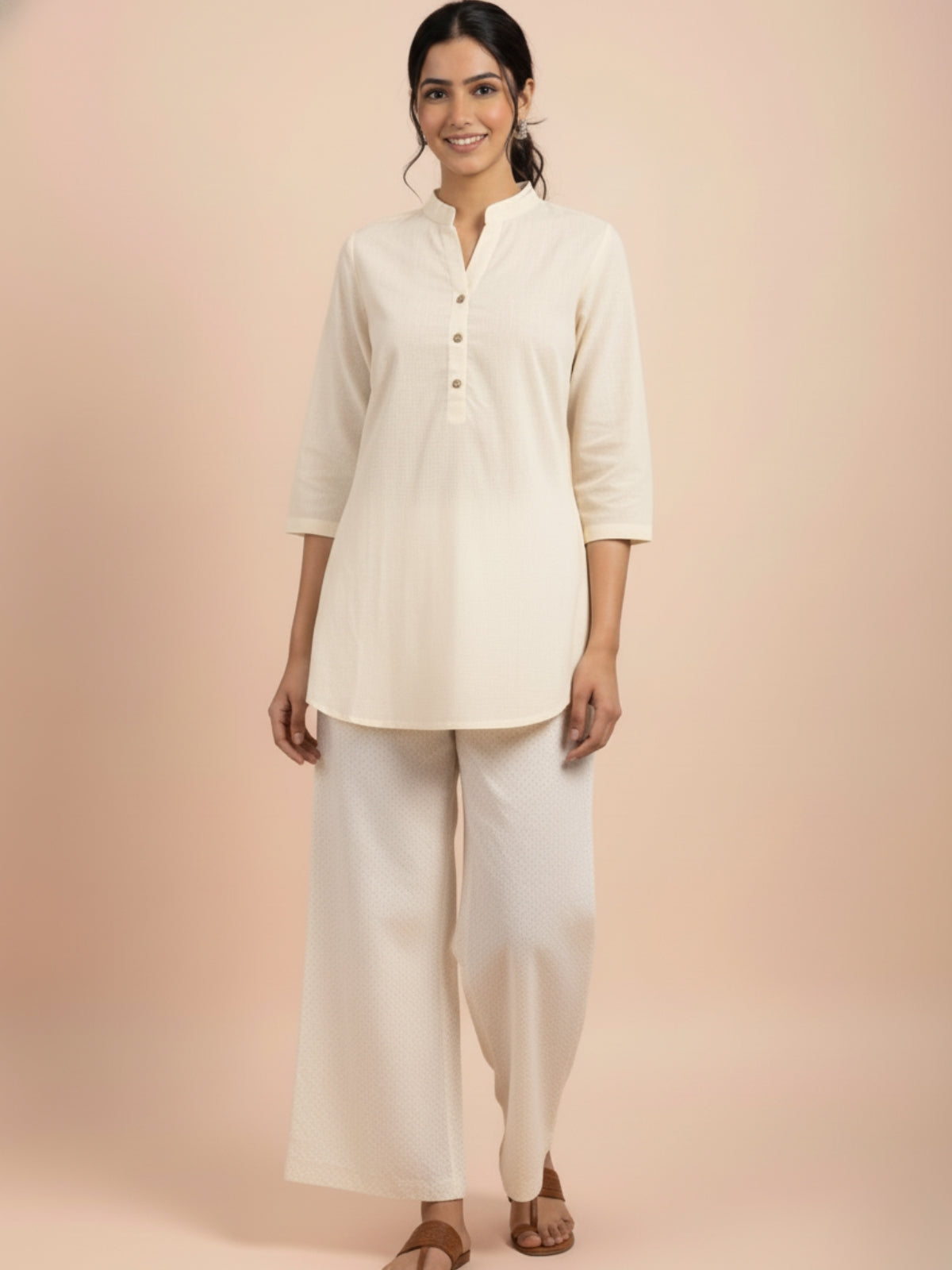 This Pack Of 2 Women's Solid Top Combo, is the ideal fusion of comfort and design, These will upgrade your wardrobe, made from a high-quality cotton that keeps you comfortable all day. Your outfit is made more sophisticated by the tasteful design. These adaptable tops is the perfect pick whether you're going to the office, on a casual trip, or to a weekend brunch. It radiates classic appeal and ups your fashion game, complete with a chinese/mandarin collar. The Women's Solid Top Combo can help you achieve modern elegance right away.