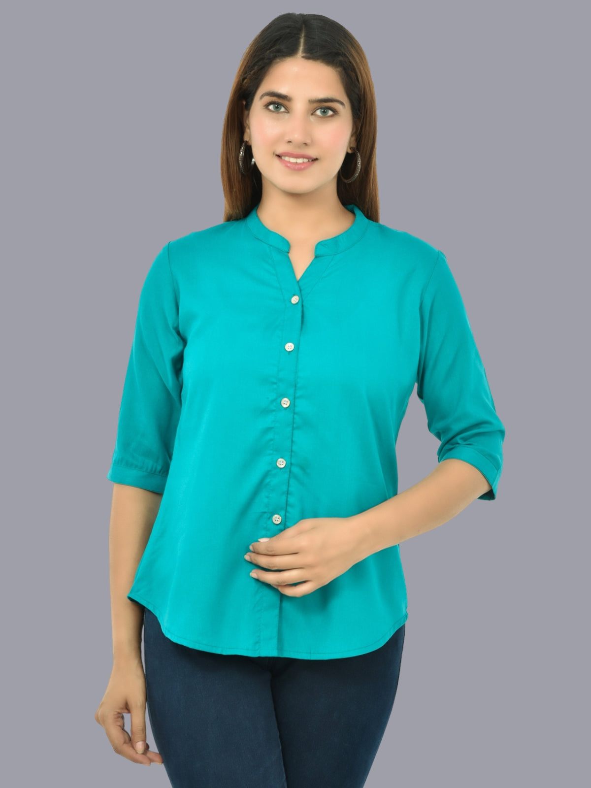 Pack Of 2 Womens Solid Dark Blue and Sky Blue Rayon Chinese Collar Shirts Combo