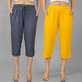 Pack Of 2 Womens Dark Grey And Mustard Calf Length Rayon Culottes Trouser Combo