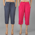 Pack Of 2 Womens Dark Grey And Rani Pink Calf Length Rayon Culottes Trouser Combo