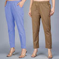 Pack Of 2 Womens Regular Fit Denim Blue And Brown Fully Elastic Waistband Cotton Trouser