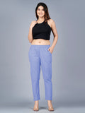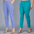 Pack Of 2 Womens Regular Fit Denim Blue And Cyan Fully Elastic Waistband Cotton Trouser