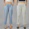 Pack Of 2 Womens Denim Blue and Off White Fully Elastic Cotton Trousers