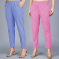 Pack Of 2 Womens Regular Fit Denim Blue And Pink Fully Elastic Waistband Cotton Trouser