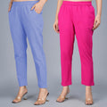 Pack Of 2 Womens Regular Fit Denim Blue And Rani Fully Elastic Waistband Cotton Trouser