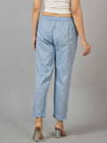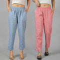 Pack Of 2 Womens Denim Blue and Red Fully Elastic Cotton Trousers