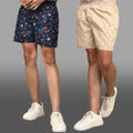 Pack Of 2 Dark Blue And Yellow Mens Printed Shorts Combo