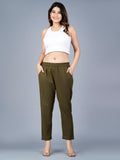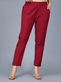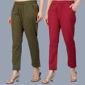 Pack Of 2 Womens Regular Fit Dark Green And Maroon Fully Elastic Waistband Cotton Trouser