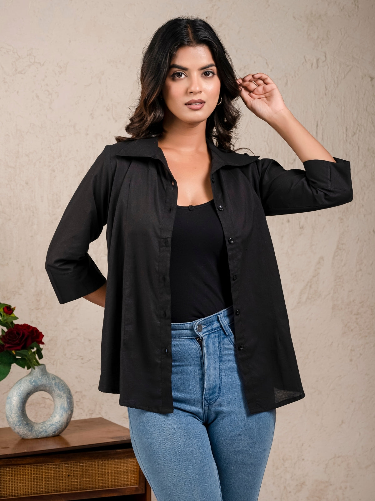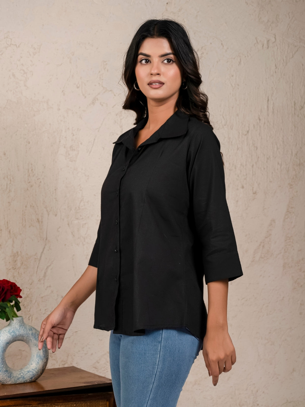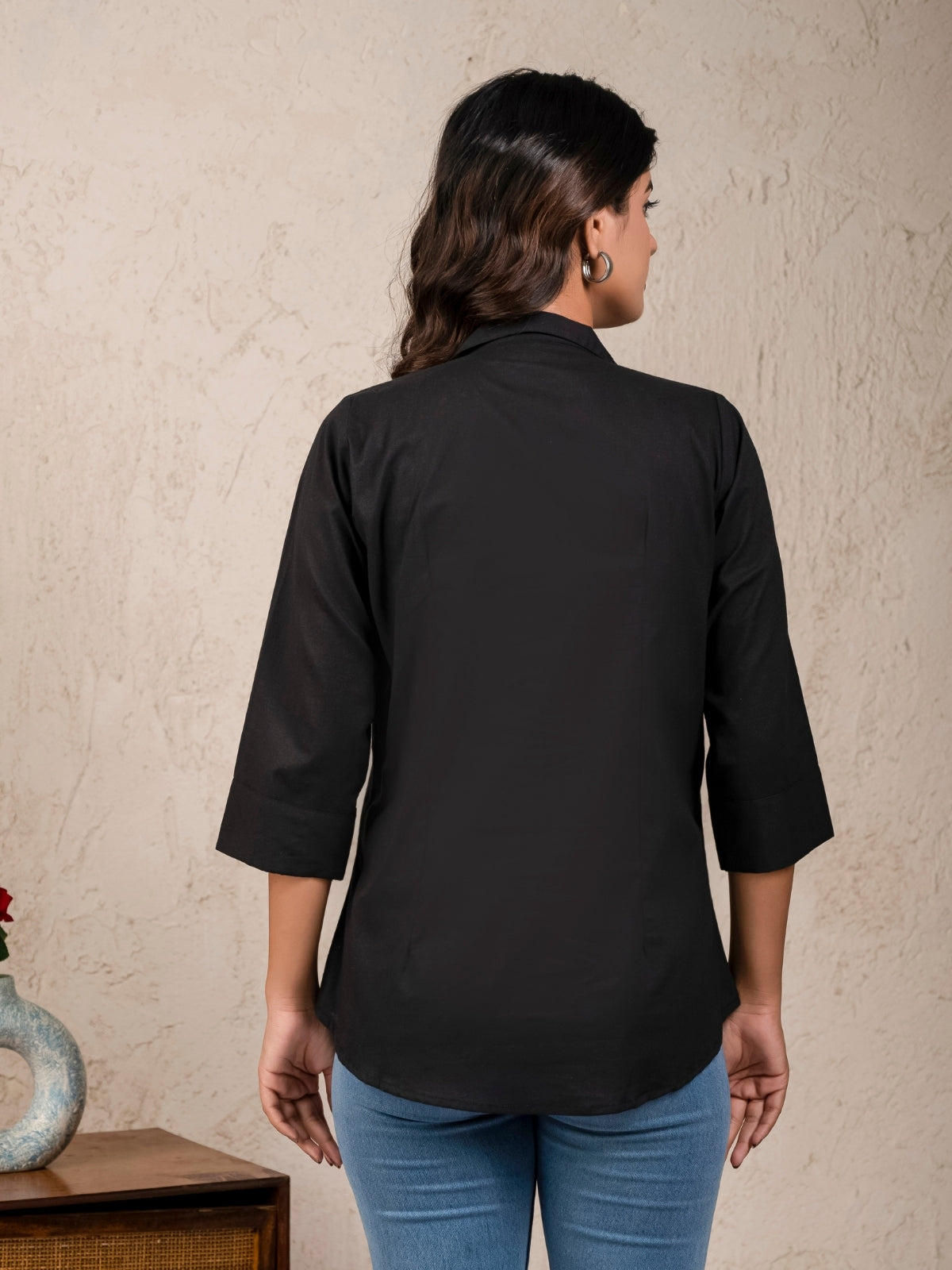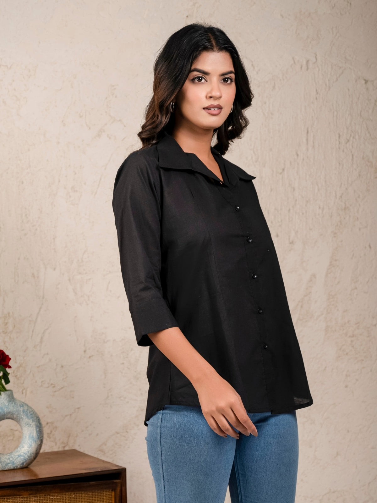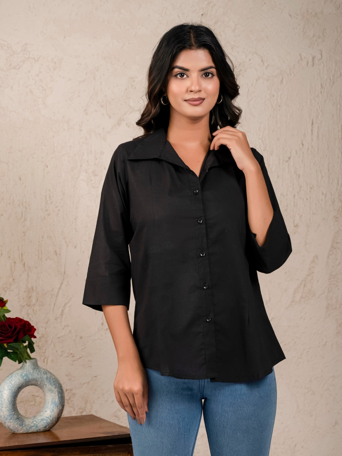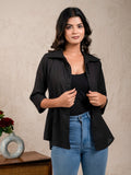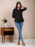 Womens Solid Black Cambric Cotton Shirt