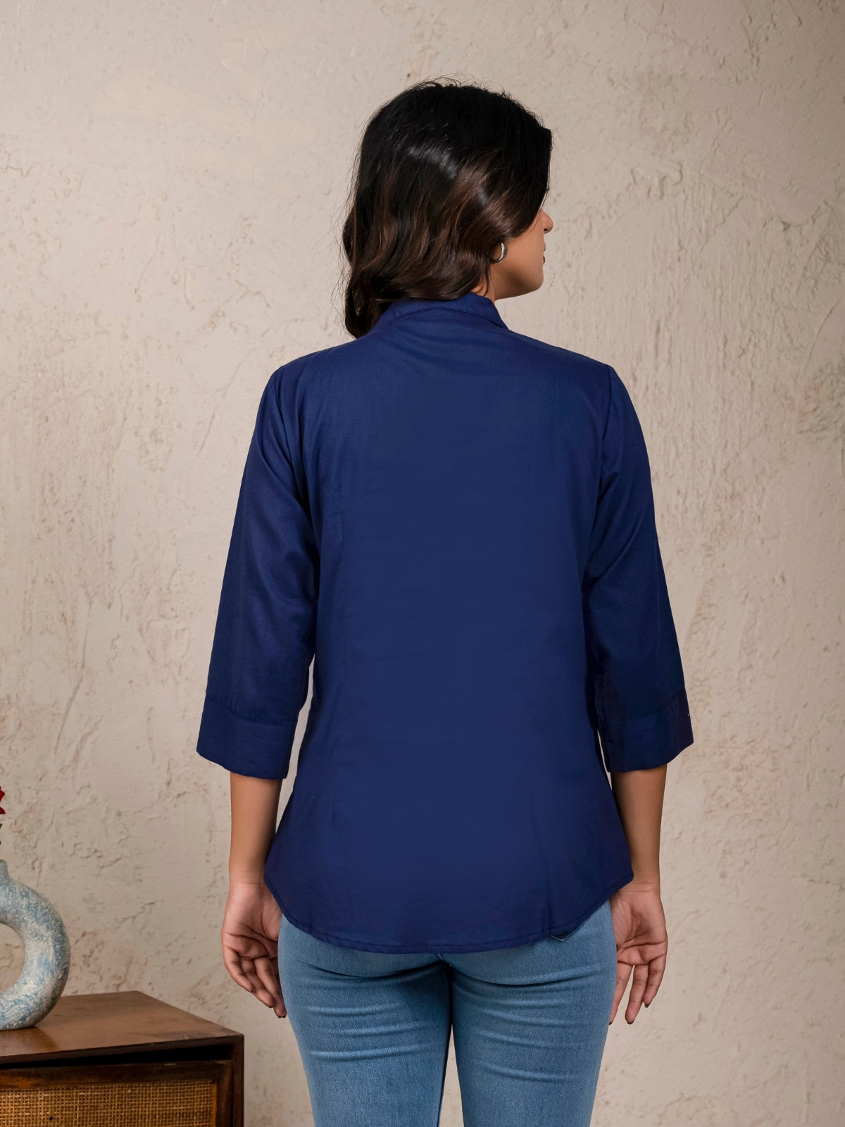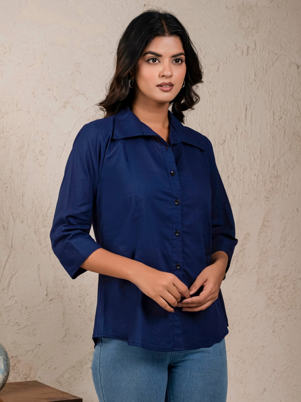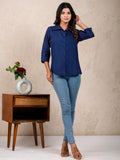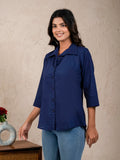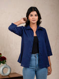 Womens Solid Navy Blue Cambric Cotton Shirt