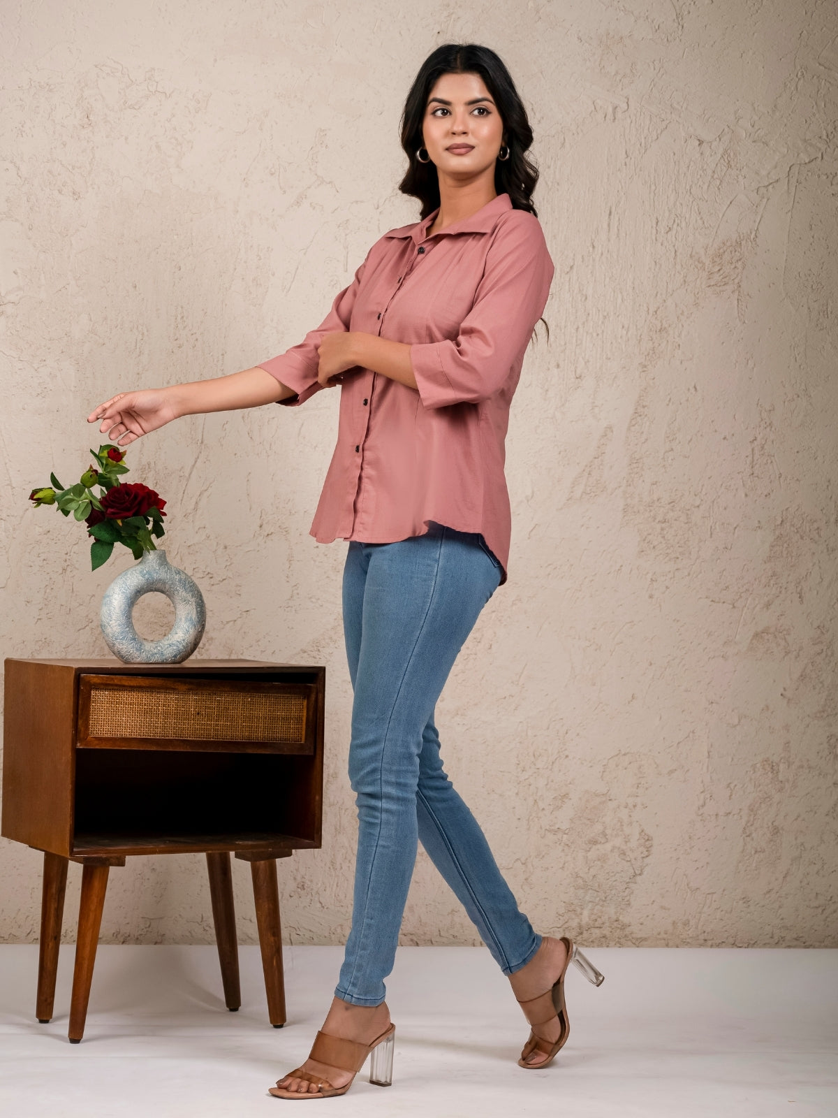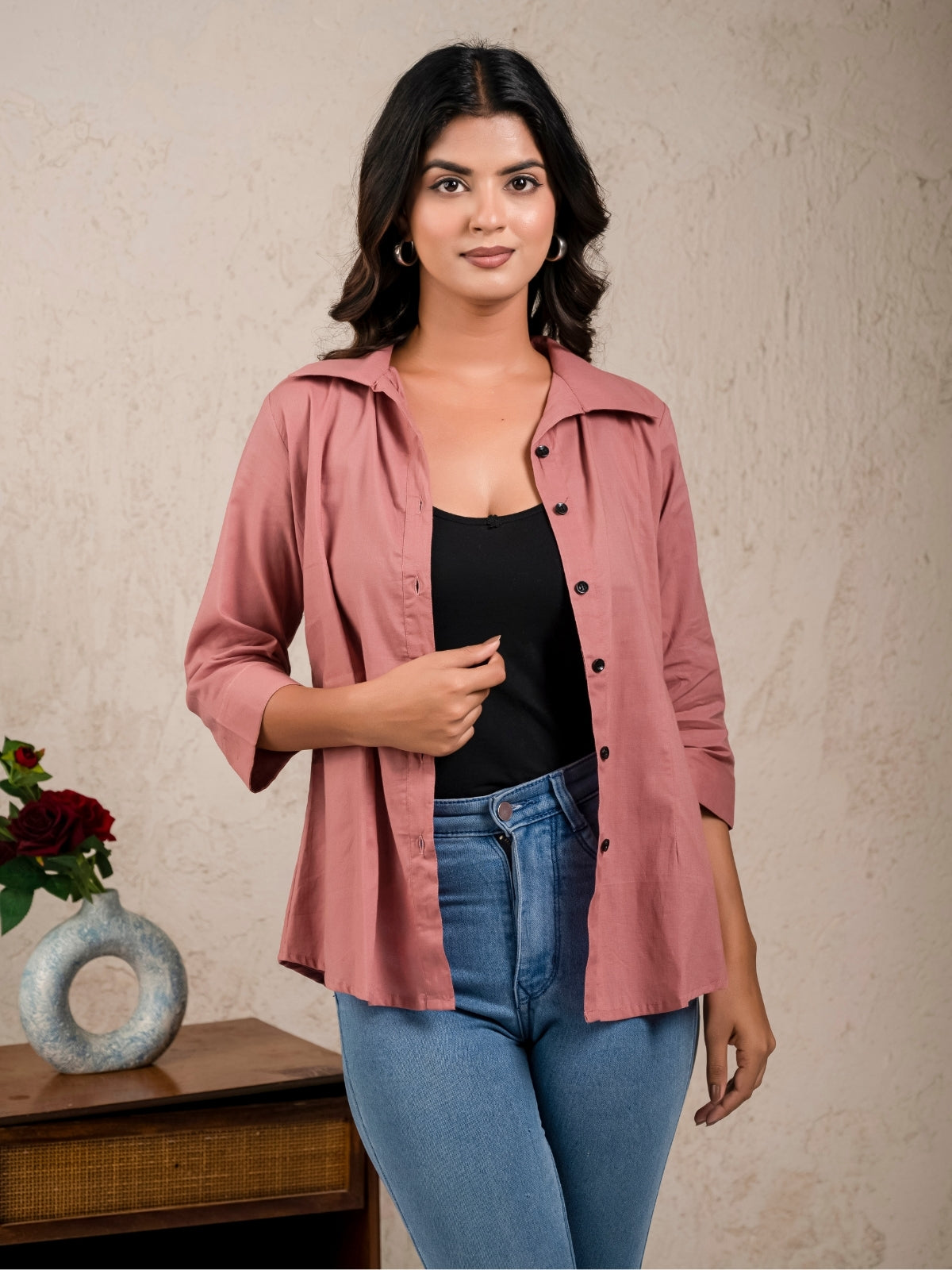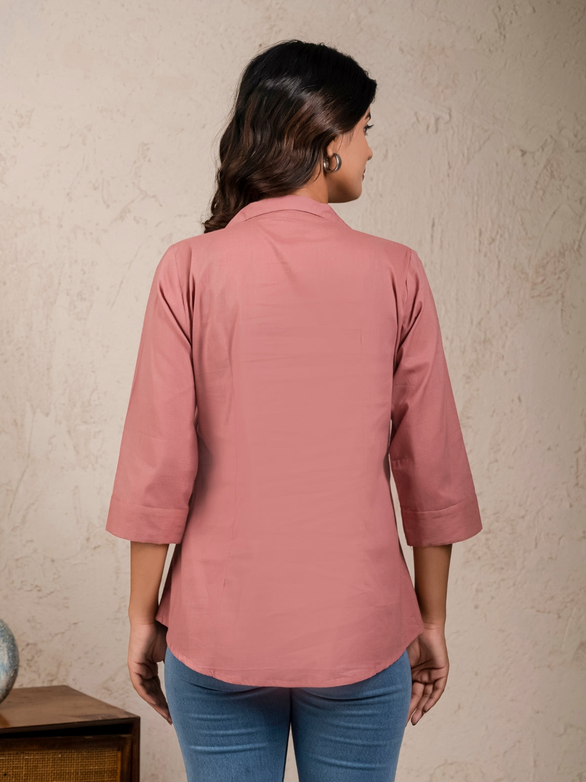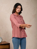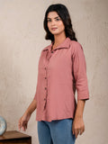 Womens Solid Rose Pink Cambric Cotton Shirt