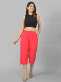 These Pack Of 2 Women's Rayon Calf Length Culottes Trousers Combo from Quaclo will Increase your level of style. These pair of adaptable culottes effortlessly combines comfort and style, making them the ideal choice for any situation. With a convenient Fully elastic and On Front Drawing string. The two spacious pockets improve functionality and convenience for your daily activities, and the solid design makes these trousers a long-lasting classic in your wardrobe.