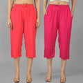 Pack Of 2 Womens Gajri And Rani Pink Calf Length Rayon Culottes Trouser Combo