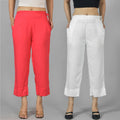Pack Of 2 Womens Gajri And White Ankle Length Rayon Culottes Trouser Combo