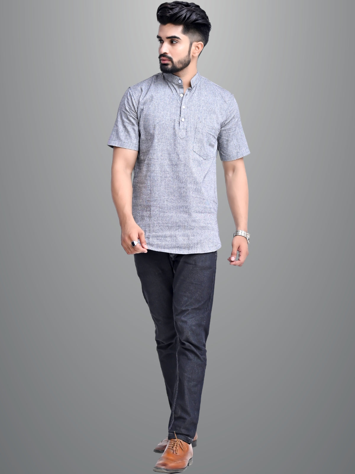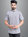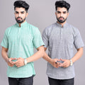 Pack of 2 Mens Solid Green And Grey Khadi Cotton Short Kurta Combo