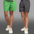 Pack Of 2 Green And Grey Mens Printed Shorts Combo