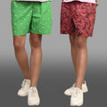 Pack Of 2 Green And Maroon Mens Printed Shorts Combo