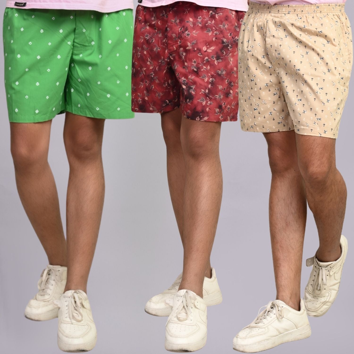 Discover Pack of 3 Mens Cotton Shorts Combo, the ultimate level of comfort and style. These shorts are made from finest cotton and provide unmatched softness and breathability, making them perfect for all-day wear. You may easily show your individual style thanks to the variety of eye-catching prints available. Buy This Pack of 3 Mens Cotton Shorts Combo And Upgrade your bottoms game right away.