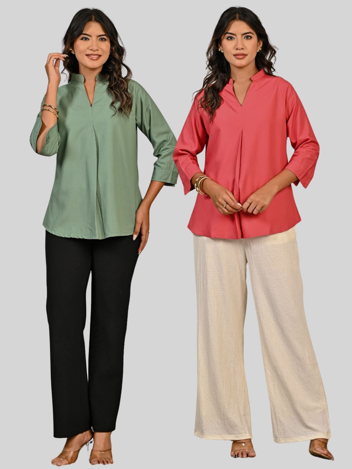 Discover our Solid Viscose V-Neck Collar Pleated Tops for Women, designed to blend comfort with timeless style. Crafted from premium viscose fabric, these chic tops features a flattering V-neck with a mandarin collar, elegant pleated detailing, and versatile 3/4th sleeves for a modern touch. Available in sizes S to 2XL and a wide range of 10 vibrant colors, they ensure the perfect fit for every woman. Ideal for both casual outings and office wear, these stylish tops can be effortlessly paired with jeans, trousers, or skirts for a polished look. Soft, breathable, and easy to style, it’s a wardrobe.